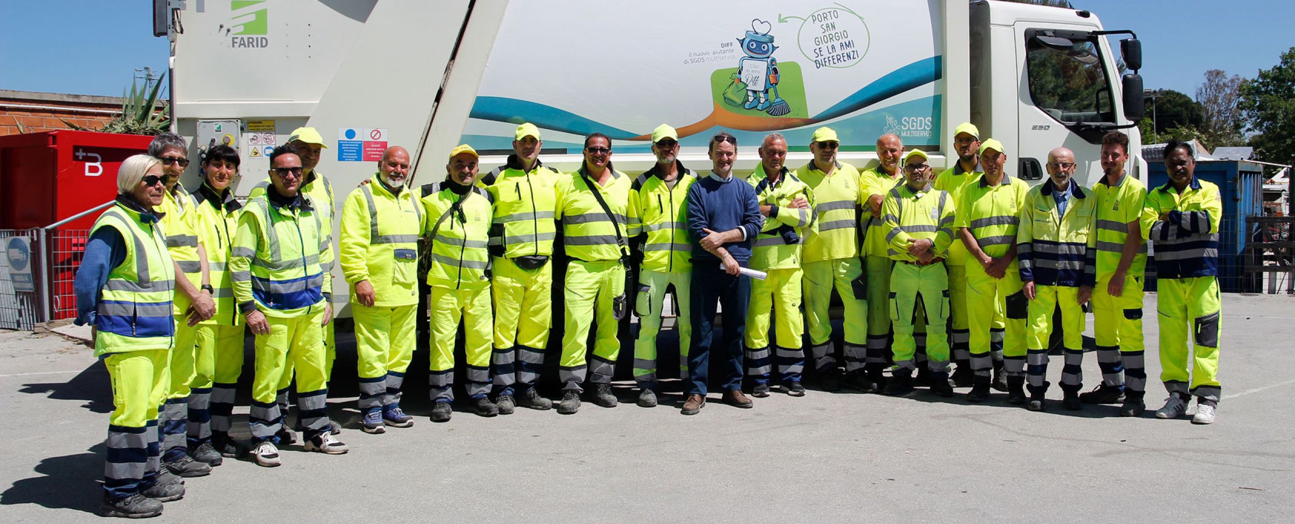 SGDS ha in organico in media 35 persone che si occupano del servizio, di cui 3 amministrativi/contabili e 33 operatori. Promuoviamo attivamente la raccolta differenziata, il riciclo e il recupero dei materiali e ritiriamo i rifiuti di tutto il territorio comunale di 8.58 km2 e della popolazione di circa 16.000 abitanti, con picchi di 28.000 abitanti nel periodo estivo. Ogni anno, gestiamo oltre 9.000.000 Kg di rifiuti, contribuendo alla salvaguardia dell’ambiente e delle risorse, con una percentuale di rifiuti differenziati recuperati nel nostro territorio del 66,40% (dati riferiti all'anno 2024).